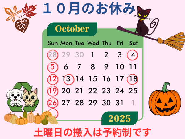 10月のお休み