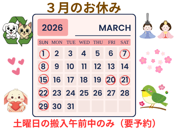 3月のお休みはこちら